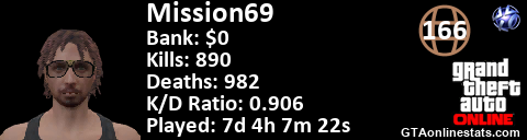 <a href="http://GTAonlinestats.com/showplayer/Mission69"><img src="http://GTAonlinestats.com/signature/Mission69/sig.png" alt="Mission69" border="0" /></a>