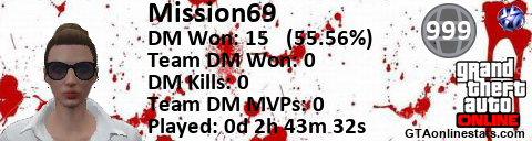 [URL=http://GTAonlinestats.com/showplayer/Mission69/2][IMG]http://GTAonlinestats.com/dmsignature/Mission69/2/sig.png[/IMG][/URL]