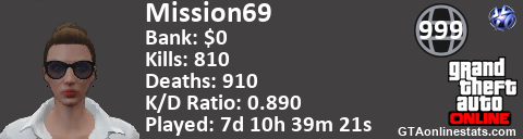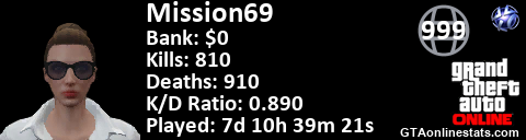 <a href="http://GTAonlinestats.com/showplayer/Mission69/2"><img src="http://GTAonlinestats.com/randomsignature/Mission69/2/sig.png" alt="Mission69" border="0" /></a>