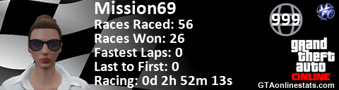 <a href="http://GTAonlinestats.com/showplayer/Mission69/2"><img src="http://GTAonlinestats.com/racesignature/Mission69/2/sig.png" alt="Mission69" border="0" /></a>