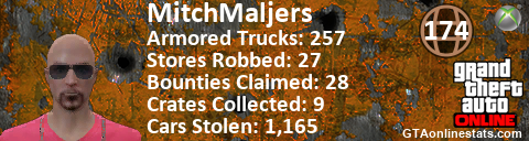[URL=http://GTAonlinestats.com/showplayer/MitchMaljers][IMG]http://GTAonlinestats.com/signature/MitchMaljers/sig.png[/IMG][/URL]