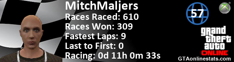[URL=http://GTAonlinestats.com/showplayer/MitchMaljers/2][IMG]http://GTAonlinestats.com/racesignature/MitchMaljers/2/sig.png[/IMG][/URL]