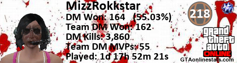 [URL=http://GTAonlinestats.com/showplayer/MizzRokkstar][IMG]http://GTAonlinestats.com/signature/MizzRokkstar/sig.png[/IMG][/URL]