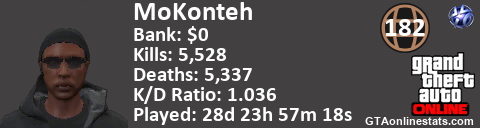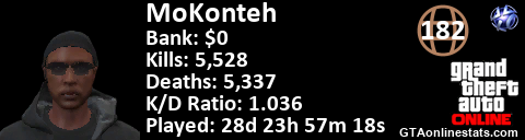 <a href="http://GTAonlinestats.com/showplayer/MoKonteh"><img src="http://GTAonlinestats.com/randomsignature/MoKonteh/sig.png" alt="MoKonteh" border="0" /></a>
