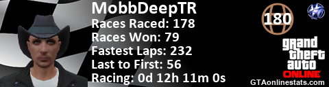<a href="http://GTAonlinestats.com/showplayer/MobbDeepTR"><img src="http://GTAonlinestats.com/racesignature/MobbDeepTR/sig.png" alt="MobbDeepTR" border="0" /></a>