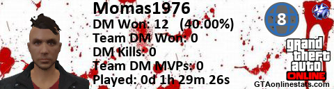 [URL=http://GTAonlinestats.com/showplayer/Momas1976/2][IMG]http://GTAonlinestats.com/dmsignature/Momas1976/2/sig.png[/IMG][/URL]
