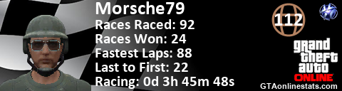 <a href="http://GTAonlinestats.com/showplayer/Morsche79"><img src="http://GTAonlinestats.com/racesignature/Morsche79/sig.png" alt="Morsche79" border="0" /></a>