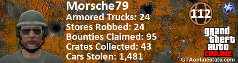 <a href="http://GTAonlinestats.com/showplayer/Morsche79"><img src="http://GTAonlinestats.com/randomsignature/Morsche79/sig.png" alt="Morsche79" border="0" /></a>