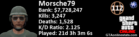 <a href="http://GTAonlinestats.com/showplayer/Morsche79"><img src="http://GTAonlinestats.com/signature/Morsche79/sig.png" alt="Morsche79" border="0" /></a>