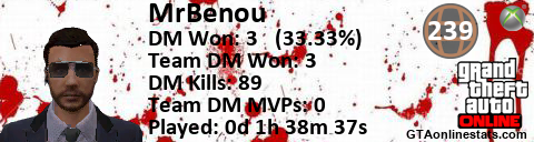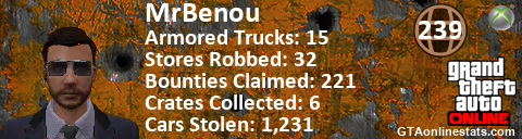 <a href="http://GTAonlinestats.com/showplayer/MrBenou"><img src="http://GTAonlinestats.com/randomsignature/MrBenou/sig.png" alt="MrBenou" border="0" /></a>
