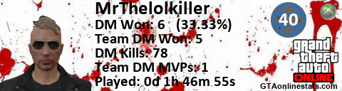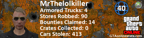[URL=http://GTAonlinestats.com/showplayer/MrThelolkiller][IMG]http://GTAonlinestats.com/randomsignature/MrThelolkiller/sig.png[/IMG][/URL]