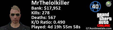 <a href="http://GTAonlinestats.com/showplayer/MrThelolkiller"><img src="http://GTAonlinestats.com/signature/MrThelolkiller/sig.png" alt="MrThelolkiller" border="0" /></a>