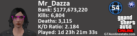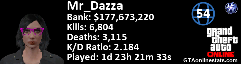 <a href="http://GTAonlinestats.com/showplayer/Mr_Dazza/2"><img src="http://GTAonlinestats.com/dmsignature/Mr_Dazza/2/sig.png" alt="Mr_Dazza" border="0" /></a>