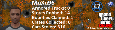 <a href="http://GTAonlinestats.com/showplayer/MuXu96/2"><img src="http://GTAonlinestats.com/crimesignature/MuXu96/2/sig.png" alt="MuXu96" border="0" /></a>