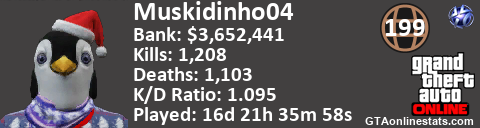 <a href="http://GTAonlinestats.com/showplayer/Muskidinho04"><img src="http://GTAonlinestats.com/greysignature/Muskidinho04/sig.png" alt="Muskidinho04" border="0" /></a>