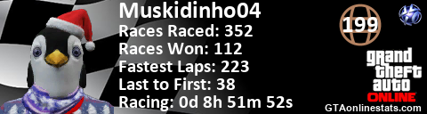 <a href="http://GTAonlinestats.com/showplayer/Muskidinho04"><img src="http://GTAonlinestats.com/racesignature/Muskidinho04/sig.png" alt="Muskidinho04" border="0" /></a>