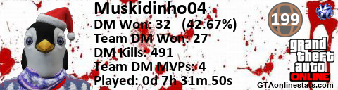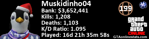 [URL=http://GTAonlinestats.com/showplayer/Muskidinho04][IMG]http://GTAonlinestats.com/dmsignature/Muskidinho04/sig.png[/IMG][/URL]