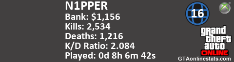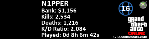 <a href="http://GTAonlinestats.com/showplayer/N1PPER/6"><img src="http://GTAonlinestats.com/dmsignature/N1PPER/6/sig.png" alt="N1PPER" border="0" /></a>