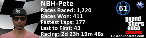 <a href="http://GTAonlinestats.com/showplayer/NBH-Pete/2"><img src="http://GTAonlinestats.com/racesignature/NBH-Pete/2/sig.png" alt="NBH-Pete" border="0" /></a>