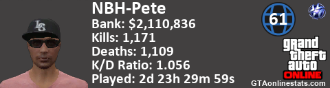 <a href="http://GTAonlinestats.com/showplayer/NBH-Pete/2"><img src="http://GTAonlinestats.com/dmsignature/NBH-Pete/2/sig.png" alt="NBH-Pete" border="0" /></a>