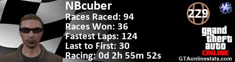 [URL=http://GTAonlinestats.com/showplayer/NBcuber][IMG]http://GTAonlinestats.com/racesignature/NBcuber/sig.png[/IMG][/URL]