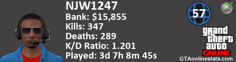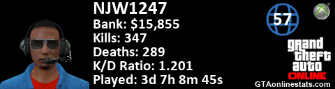 [URL=http://GTAonlinestats.com/showplayer/NJW1247][IMG]http://GTAonlinestats.com/signature/NJW1247/sig.png[/IMG][/URL]