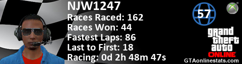 [URL=http://GTAonlinestats.com/showplayer/NJW1247][IMG]http://GTAonlinestats.com/racesignature/NJW1247/sig.png[/IMG][/URL]