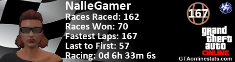 <a href="http://GTAonlinestats.com/showplayer/NalleGamer"><img src="http://GTAonlinestats.com/racesignature/NalleGamer/sig.png" alt="NalleGamer" border="0" /></a>
