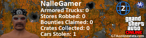 [URL=http://GTAonlinestats.com/showplayer/NalleGamer/2][IMG]http://GTAonlinestats.com/randomsignature/NalleGamer/2/sig.png[/IMG][/URL]