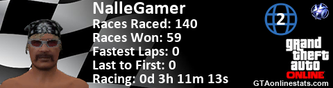 [URL=http://GTAonlinestats.com/showplayer/NalleGamer/2][IMG]http://GTAonlinestats.com/racesignature/NalleGamer/2/sig.png[/IMG][/URL]