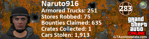 [URL=http://GTAonlinestats.com/showplayer/Naruto916][IMG]http://GTAonlinestats.com/crimesignature/Naruto916/sig.png[/IMG][/URL]