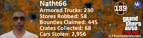 [URL=http://GTAonlinestats.com/showplayer/Natht66][IMG]http://GTAonlinestats.com/crimesignature/Natht66/sig.png[/IMG][/URL]