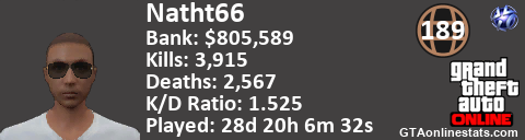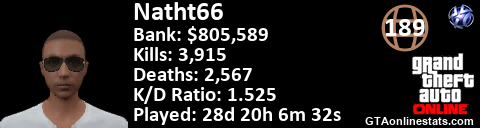 [URL=http://GTAonlinestats.com/showplayer/Natht66][IMG]http://GTAonlinestats.com/signature/Natht66/sig.png[/IMG][/URL]