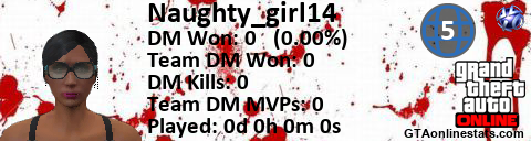 [URL=http://GTAonlinestats.com/showplayer/Naughty_girl14][IMG]http://GTAonlinestats.com/signature/Naughty_girl14/sig.png[/IMG][/URL]