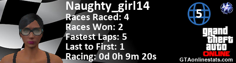 <a href="http://GTAonlinestats.com/showplayer/Naughty_girl14"><img src="http://GTAonlinestats.com/racesignature/Naughty_girl14/sig.png" alt="Naughty_girl14" border="0" /></a>