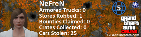 [URL=http://GTAonlinestats.com/showplayer/NeFreN/2][IMG]http://GTAonlinestats.com/crimesignature/NeFreN/2/sig.png[/IMG][/URL]
