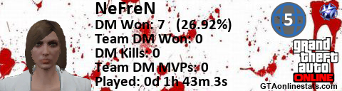 [URL=http://GTAonlinestats.com/showplayer/NeFreN/2][IMG]http://GTAonlinestats.com/dmsignature/NeFreN/2/sig.png[/IMG][/URL]