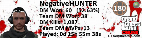 [URL=http://GTAonlinestats.com/showplayer/NegativeHUNTER][IMG]http://GTAonlinestats.com/dmsignature/NegativeHUNTER/sig.png[/IMG][/URL]