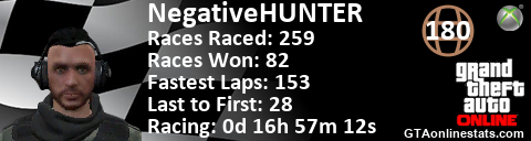 <a href="http://GTAonlinestats.com/showplayer/NegativeHUNTER"><img src="http://GTAonlinestats.com/racesignature/NegativeHUNTER/sig.png" alt="NegativeHunter" border="0" /></a>