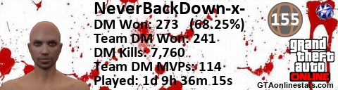 [URL=http://GTAonlinestats.com/showplayer/NeverBackDown-x-][IMG]http://GTAonlinestats.com/greysignature/NeverBackDown-x-/sig.png[/IMG][/URL]