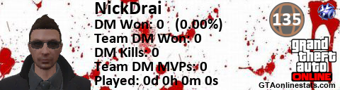 [URL=http://GTAonlinestats.com/showplayer/NickDrai][IMG]http://GTAonlinestats.com/dmsignature/NickDrai/sig.png[/IMG][/URL]