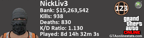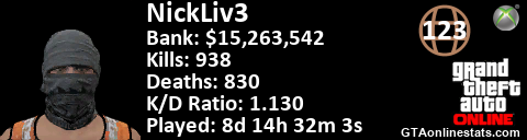 <a href="http://GTAonlinestats.com/showplayer/NickLiv3"><img src="http://GTAonlinestats.com/dmsignature/NickLiv3/sig.png" alt="NickLiv3" border="0" /></a>