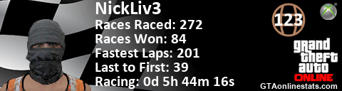 [URL=http://GTAonlinestats.com/showplayer/NickLiv3][IMG]http://GTAonlinestats.com/racesignature/NickLiv3/sig.png[/IMG][/URL]