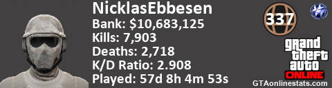 [URL=http://GTAonlinestats.com/showplayer/NicklasEbbesen][IMG]http://GTAonlinestats.com/randomsignature/NicklasEbbesen/sig.png[/IMG][/URL]