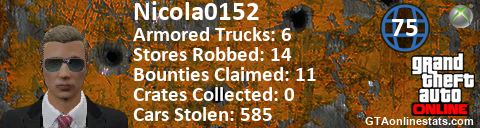 [URL=http://GTAonlinestats.com/showplayer/Nicola0152][IMG]http://GTAonlinestats.com/signature/Nicola0152/sig.png[/IMG][/URL]