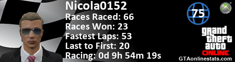 <a href="http://GTAonlinestats.com/showplayer/Nicola0152"><img src="http://GTAonlinestats.com/racesignature/Nicola0152/sig.png" alt="Nicola0152" border="0" /></a>