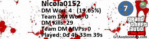 [URL=http://GTAonlinestats.com/showplayer/Nicola0152/2][IMG]http://GTAonlinestats.com/dmsignature/Nicola0152/2/sig.png[/IMG][/URL]
