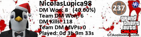 <a href="http://GTAonlinestats.com/showplayer/NicolasLupica98"><img src="http://GTAonlinestats.com/dmsignature/NicolasLupica98/sig.png" alt="NicolasLupica98" border="0" /></a>