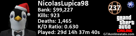 [URL=http://GTAonlinestats.com/showplayer/NicolasLupica98][IMG]http://GTAonlinestats.com/greysignature/NicolasLupica98/sig.png[/IMG][/URL]