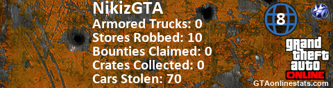 <a href="http://GTAonlinestats.com/showplayer/NikizGTA"><img src="http://GTAonlinestats.com/crimesignature/NikizGTA/sig.png" alt="NikizGTA" border="0" /></a>
